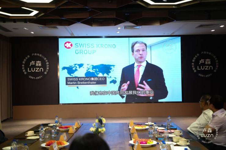 由于疫情影响,SWISS KRONO集团CEO Martin Brettenthaler、北京居然之家家居连锁集团有限公司集团总裁王宁、红星美凯龙集团执行总裁兼大营运中心总经理朱家桂以及业之峰集团董事长张钧,也分别通过连线的方式,分享了对卢森地板的发展以及品牌升级的祝福。